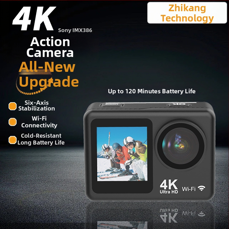 Αθλητική κάμερα 4K αδιάβροχη με σταθεροποίηση, διπλής LCD οθόνης 2.0 και 1.3 ιντσών, TF κάρτα, 24MP, ~2 ώρες μπαταρία
