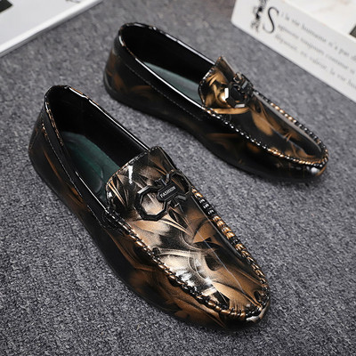 Ανδρικά μοντέρνα έκο δερμάτινα μοκασίνια με μεταλλικό στοιχείο