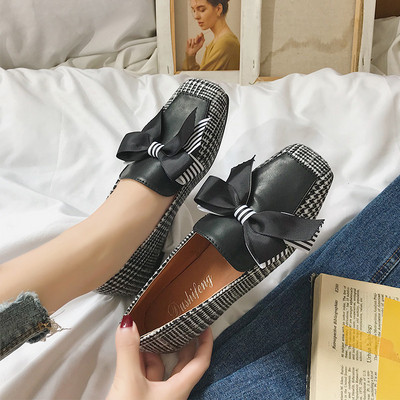 Γυναικεία μοκασίανια καρό με κορδέλα σε δύο χρώματα