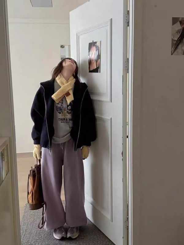 Γυναικείες φλις-επενδυμένες παντελόνες σε χαλαρή γραμμή, casual, με τσέπη με καρδιά, ελαστική μέση, βαμβάκι 50–70%