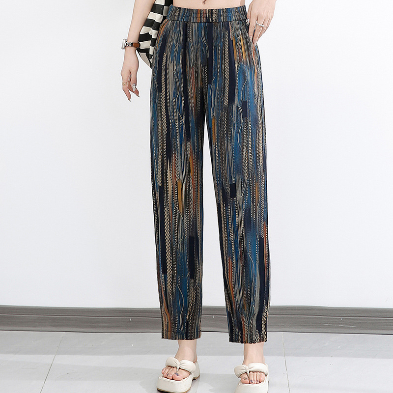 Γυναικείες χαλαρές παντελόνες από πολυεστέρα, με ψηλή μέση, μικροελαστικότητα, patchwork ραφή