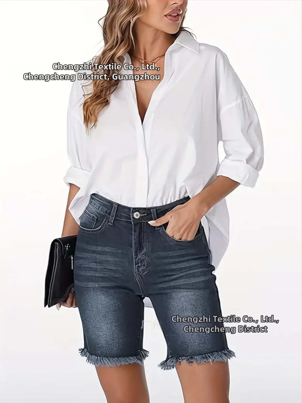 Γυναικείοι τζιν καπρι από ντένιμ, μέση μέτρια, στυλ δρόμου-χιπστερ, 50–70% βαμβάκι και 30–50% πολυεστέρα.