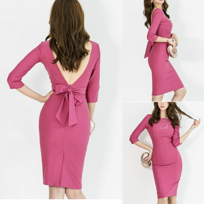 Γυναικείο εξώπλατο φόρεμα με κορδέλα σε ροζ χρώμα