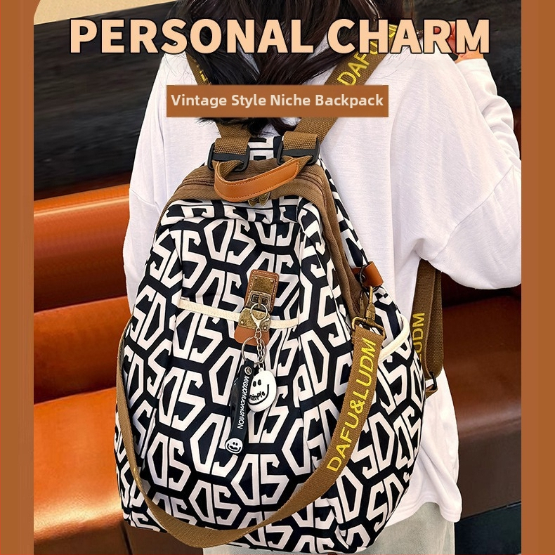 Νάιλον σχολική τσάντα με αστικό μινιμαλιστικό σχέδιο, αδιάβροχη και ανθεκτική, άνοιγμα με καπάκι, εσωτερικές θήκες: κρυφή θήκη με φερμουάρ, θήκη για κινητό, εσωτερική θήκη με φερμουάρ, άνοιξη 2024