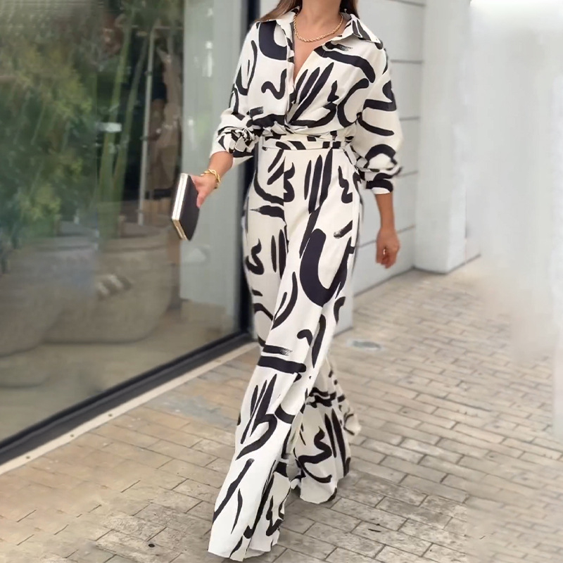 Ολόσωμη φόρμα με μακριά μανίκια, με εκτύπωση, με υψηλή μέση και στενά παντελόνια
