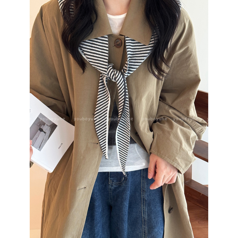 Πλεκτός κασκόλ με κουκούλα σε κορεατικό στυλ, ριγέ, για γυναίκες — χειμώνας, άνοιξη, φθινοπωρινός, μόδα