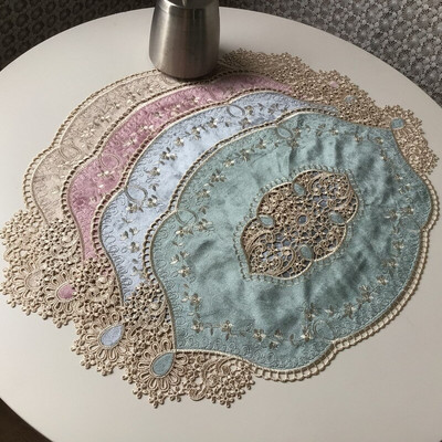 Ρετρό Γαλλικό στυλ Φανελένιο με κεντητό σουπλά με δαντέλα Ματ τσαγιού Φλιτζάνι σουβέρ Τραπεζομάντιλο Ποιμενικό Κομοδίνο Διακόσμηση πάρτι