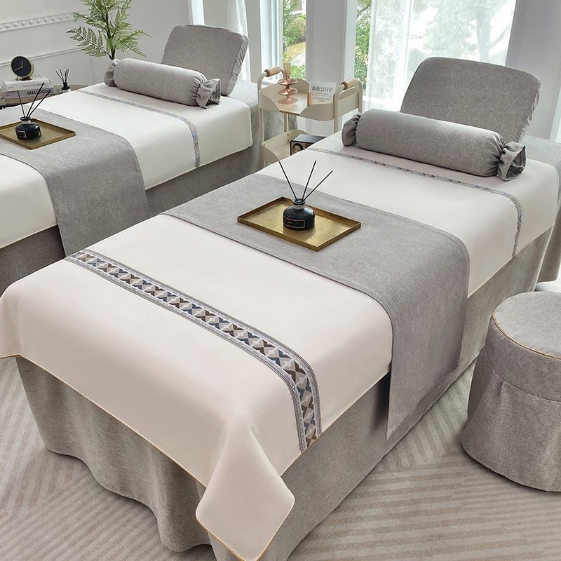 Σετ κάλυμμα κρεβατιού ομορφιάς για μασάζ σε ινστιτούτο, τεσσάρων τεμαχίων, βαμβακερό ύφασμα, απλή ύφανση, αντιδραστική βαφή, μονόχρωμο