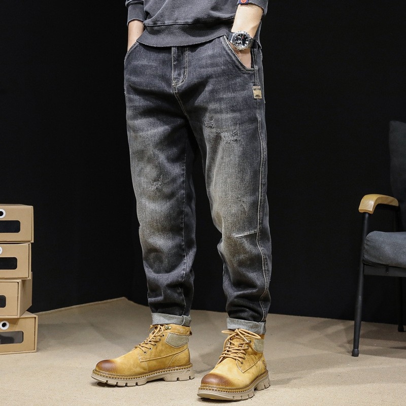 Τζιν ανδρικά ανοιξιάτικα και φθινοπωρινά ίσια φαρδιά παντελόνια plus size ανδρικά ελαστικά παντελόνια 2023 νέα ανδρικά μαύρα παντελόνια φθινοπώρου