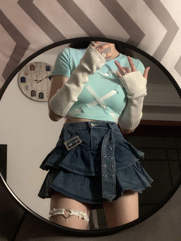 Φούστα από τζιν σε Α-γραμμή, υψηλή μέση, πιέτες, κοντή, ανάμειξη βαμβάκι-πολυεστέρας