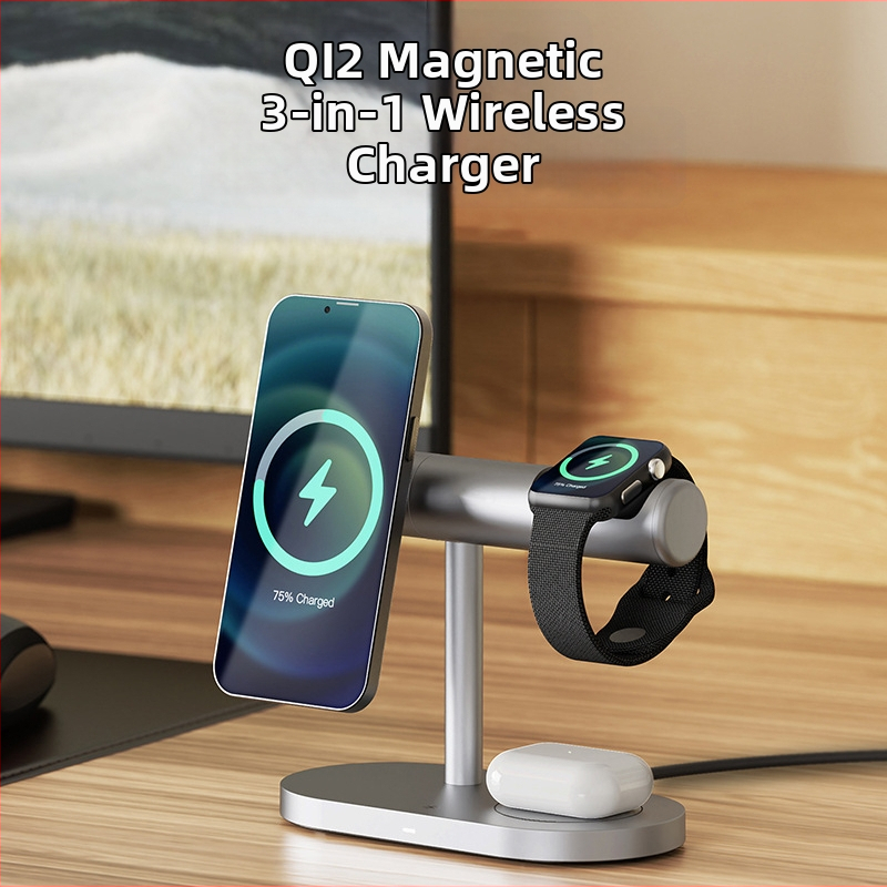 Qi2 Ασύρματο Φορτιστής Τρία-σε-Ένα με PD3.0, 15W, Νυχτερινό Φως